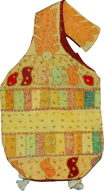 Applique Work HandbagsThe bag closes with a string on the top. Inner lining on the entire purse is plain cotton.