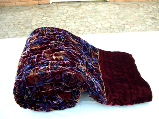 Vintage Cotton Quilt With Velvet Quilt Specifications: 100% export quality pre-shrunk voil cotton cover of thread count 56x60, filled with finely combed superior quality natural cotton. Hand quilted and double hand stitched for better holding of cotton sheet.jaipuri quilts or razai are characterized by their incredible feather-weight lightness, softness and warmth. These good looking, fluffy, hand-made indian razai or quilts are a speciality of jaipur. Guaranteed fast & vibrant colours.Material : 100% CottonFilling : CottonPattern : PrintedAge Group : AdultsSize : 90 X 100 InchesTechnics : HandmadeOffer : Buy 5 Pices USD$ 23.99 Per Piece