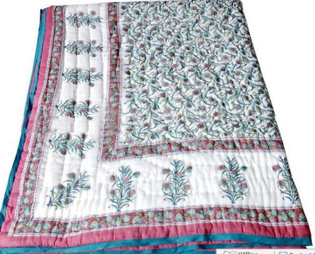 Here We Present Handmade Cotton health care Block Print Premium King Size Reversible Quilt is from unique collection. It can use from both sides, both side is in different Print. Dry, soft & comfortable quilt is hand quilted and has 4 to 6 stitches per inch. We have used pre washed 100% cotton on front and back and quilt is filled with cotton batting. A pure Cotton quilt can effectively absorb the humidity in it and give off soon, just to keep a dry and comfortable condition & sleep better with a Cotton quilt.Please make sure to carefully consider the sizes above to make sure they fit your personal preferences.
