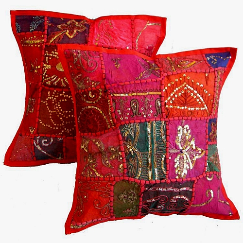 Heavy beaded work embroidered cushion cover Work : Hand Embroidery & patchwork Material : Cotton This price is for per pice Minimum Order Quantity : 5 Pices