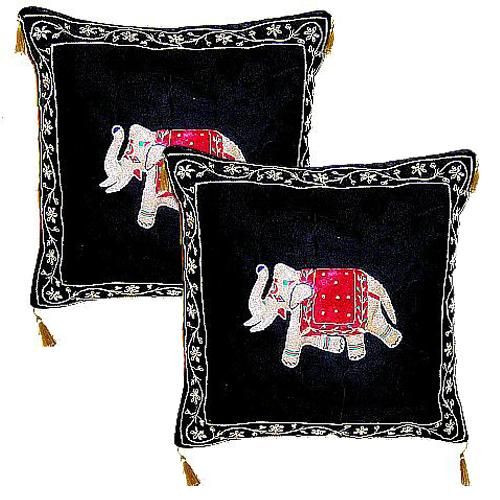 Velvet Base Cushion Covers with Zardozi Embroidered Borders and Heavy Zardozi Embroidery Formed Designs in Relief Look Work : Intricate Hand Embroidery with gold & silver threads (Zardosi) Material : Pure velvet, Gold & Silver threads This price is for per pice Minimum Order Quantity : 5 Pices