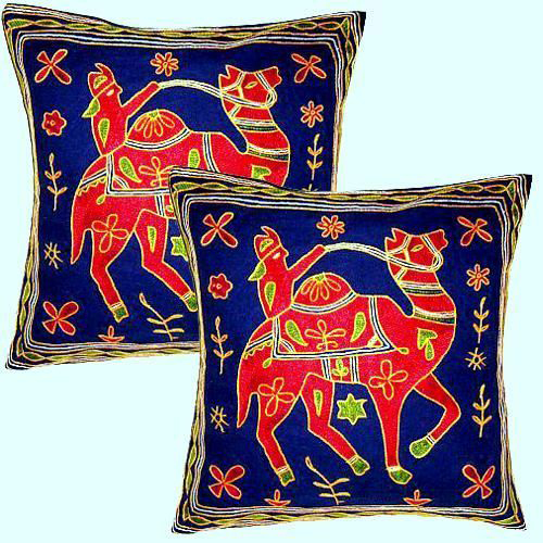 Beautiful handmade Indian cushion cover with a completely hand embroidered and therefore unique. The brightly coloured threads complement the fine Embroidery. Little mirrors which are sewn in by hand in each cushion add a sparkling elegance to this design. The embroidery is on a 100% Indian cotton base. Each cushion cover is hand made in the villages of Barmer in Rajasthan. Work : Hand Aari (Cross Stitch) Embroidery Material : Cotton This price is for per pice Minimum Order Quantity : 5 Pices