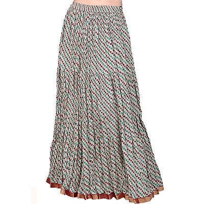 Designer & Fashionable- Fancy Granite color Bandhej Design Cotton Skirt with border in silver and golden zari threads.