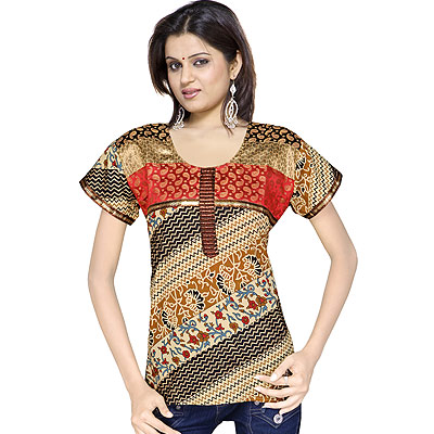 At we offer you an exclusive range of exclusive multi pattern designer cotton kurti top -141. the beauty of the top is brocade patch work on neck and front. This kurti is versatile for any season and is comfy for any occasion. This top can be worn over your favorite jeans, pant, skirt, leggings. Minimum Order Quantity : 5 Pices