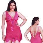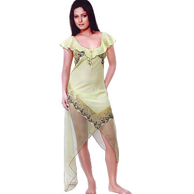 Green Sparkler: Ultimate Long Frock Night WearThe single piece fall over night wear made from finest imported chiffon fabric with rich embroidered laces with matching thongs. Very soft and subtle wear with collar shoulders to give that waiting for you look to the young lady. Dont let her loose In this dress. Today you will get to know how gorgeous she is and dont ask her what she is waiting for ... Size: Free (Fits burst size of 30 -36"). Color: Soft Green Wash Care: Please get the product drycleaned for the first time to maintain the vibrancy of the fabric. Thereafter, regular machine or hand wash in normal or luke warm water. Return Policy: No Returns or Refunds shall be accepted due to hygiene reasons. Minimum Order Quantity 5 Piecs