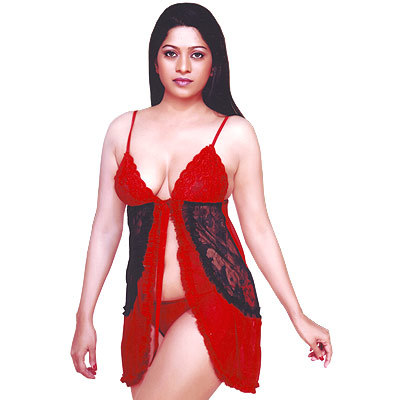 Fire Inside, Cool Outside: Hot Baby Doll NightwearA dress to blow off your mind. Red -color Baby Doll front open style night wear so that you swim across whole night with her. The straps running around the backless dress may turn your room into ashes if let free. Made from imported net fabric with lavish lace work. Very soft and comfortable nightwear to give seductive look to the young lady. Size: Free (Fits burst size of 30 -36"). Color: Black -Red Wash Care: Please get the product drycleaned for the first time to maintain the vibrancy of the fabric. Thereafter, regular machine or hand wash in normal or luke warm water. Return Policy: No Returns or Refunds shall be accepted due to hygiene reasons. Minimum Order Quantity 5 Piecs