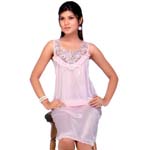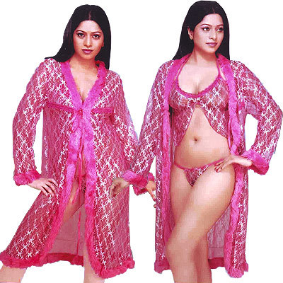 Straight From the Heaven: Blue Baby Doll Night FrockA fancy frock made from sheer Blue Korean net with matching panties. Very soft and comfortable nightwear with Frill stylish neck. Frilled lace work across the front bust and the net -satin work in the bottom will lure your dreams. The Blue -black contrast net in the front body with peeping belly and the lavish lace work on the bust makes the outfit sensual. GiftThis outfit to the lady of your heart with the instruction to keep the room lightly lit ... else you will fall prey. Size: Free (Fits burst size of 30 -36"). Color: Blue -Black Wash Care: Please get the product drycleaned for the first time to maintain the vibrancy of the fabric. Thereafter, regular machine or hand wash in normal or luke warm water. Return Policy: No Returns or Refunds shall be accepted due to hygiene reasons. Minimum Order Quantity 5 Piecs