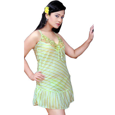 Sweetest Baby Doll !! Green Fairy Queen Sleep Wear:A fancy frock made from sheer green Korean fabric with matching panties. Very soft and comfortable nightwear with frill style neck. The lavish lace work at the end and the net -satin work across the neckline will lure your dreams. The green matching net in the front body with peeping cleavage and the lace work on the bust makes the outfit sensual. Gift this creation to the lady of your heart with the instruction to keep the room lightly lit... else you will fall prey to her. Size: Free (Fits burst size of 30 to 36 inches). Color: Soft Green Wash Care: Please get the product drycleaned for the first time to maintain the vibrancy of the fabric. Thereafter, regular machine or hand wash in normal or luke warm water. Return Policy: No Returns or Refunds shall be accepted due to hygiene reasons. Minimum Order Quantity 5 Piecs