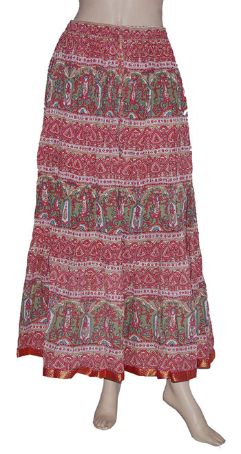 Amazing & Stylish Designer Hand Block Print Work Long Skirt with a beautiful Brocade Lace Work. This Long & Vintage Style skirt looks so cute & Sexy..& gives the cool look in summers. This simple traditional style will add a fun touch to any wardrobe. You can try out this Marvelous Skirt for any Party & festival. This will surely gives a Sexy Look