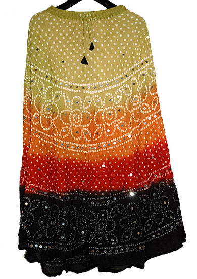 Hot Sexy Bandhani Skirt Tie & Dye With Sequins Work. Indian Bandhej Skirts are very much in Fashion now days Thats why here we present New Boho Bohemian Tie & Dye Skirt with Cool & Sexy Look. A perfect Traditional Skirt For This Hot Summer. This Marvelous Skirt is not only Gorgeous but Comfortable too. This Casual & Sexy Skirt has airy feel in summer. Drawstring at waist adds to its casual look and feel. The waist is 20 inches, it stretches comfortably to 38 inches. One size mostly fits all as the waist is draw String elasticized. This Long & Vintage Style skirt looks so cute & Sexy... & gives the cool look in summers. Being hand crafted in India, each of these skirts have an unique finish. A good quality cotton Bandhini Bandhej skirt.
