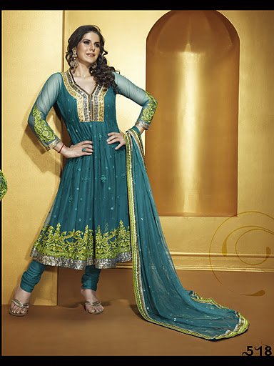 Net & Crepe designer Anarkali style churidar suit enhanced with pretty hand work embroidery teamed up with matching churidar and dupatta. For Price : Please contact us or mail us at sales@zenamart.com with product name