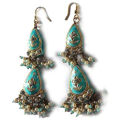 Customers can avail from us wide range of rajasthani lacquer turquoise hoops fashion Earrings. these earrings have the turquoise hoops on them that elaborate their elegance and looks.