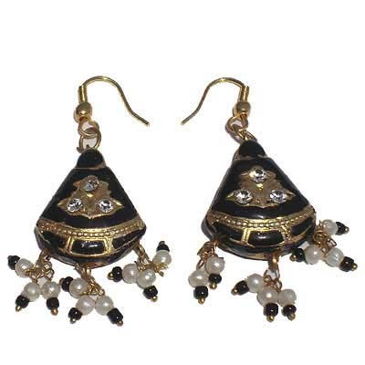 Traditionally designed earrings in Lacquer work on Silver sheet base in bold Black colour. The earrings can be worn with Indian as well as Western outfits. Adorn this beautiful Jewelry creation to give yourself a graceful look. These vibrant earrings are traditionally designed and handcrafted. They are richly made and display a fine shine.