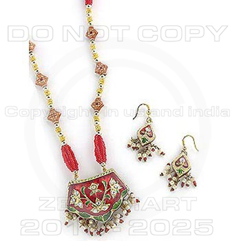 Traditional Indian Lac/Lakh Handcrafted Ethnic Jewelry Pendant Set With Matching Earrings from India : India is famous for traditional handcrafted ethnic jewelry. Lakh Jewelry (wax filled jewelry).