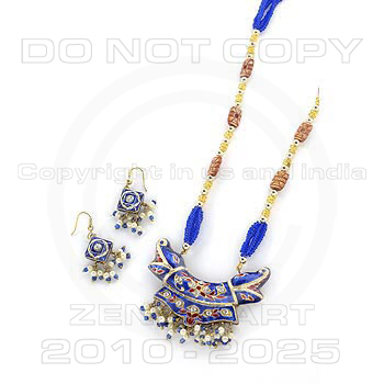 Traditional Indian Lac/Lakh Handcrafted Ethnic Jewelry Pendant Set With Matching Earrings from India : India is famous for traditional handcrafted ethnic jewelry. Lakh Jewelry (wax filled jewelry).