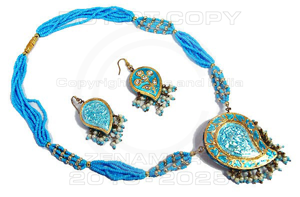 Traditional Indian Lac/Lakh Handcrafted Ethnic Jewelry Pendant Set With Matching Earrings from India : India is famous for traditional handcrafted ethnic jewelry. Lakh Jewelry (wax filled jewelry).
