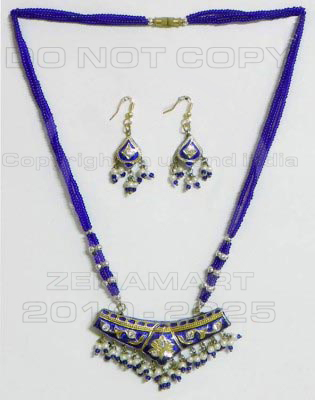 Traditional Indian Lac/Lakh Handcrafted Ethnic Jewelry Pendant Set With Matching Earrings from India : India is famous for traditional handcrafted ethnic jewelry. Lakh Jewelry (wax filled jewelry).