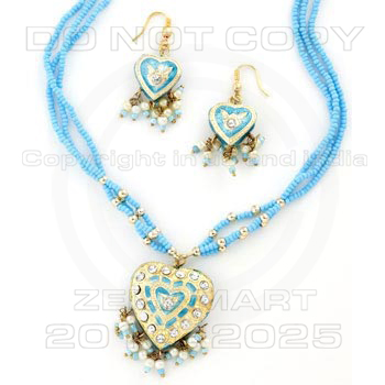 Traditional Indian Lac/Lakh Handcrafted Ethnic Jewelry Pendant Set With Matching Earrings from India : India is famous for traditional handcrafted ethnic jewelry. Lakh Jewelry (wax filled jewelry).