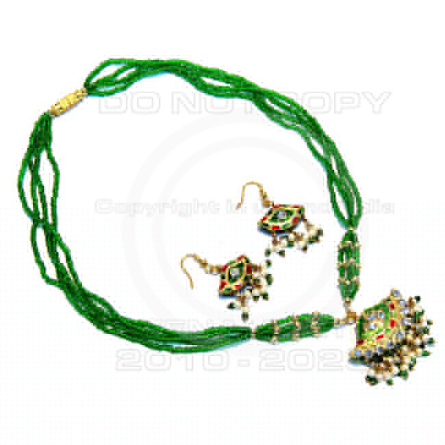 Traditional Indian Lac/Lakh Handcrafted Ethnic Jewelry Pendant Set With Matching Earrings from India : India is famous for traditional handcrafted ethnic jewelry. Lakh Jewelry (wax filled jewelry).