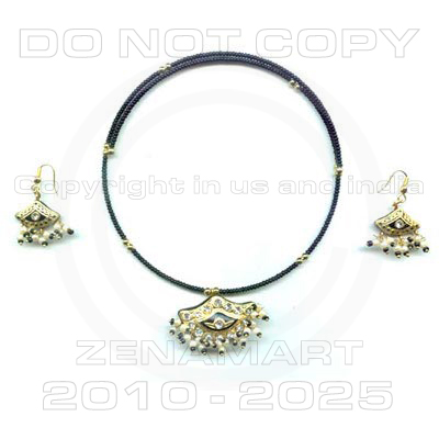 Traditional Indian Lac/Lakh Handcrafted Ethnic Jewelry Pendant Set With Matching Earrings from India : India is famous for traditional handcrafted ethnic jewelry. Lakh Jewelry (wax filled jewelry).