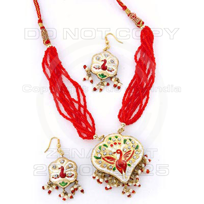 Traditional Indian Lac/Lakh Handcrafted Ethnic Jewelry Pendant Set With Matching Earrings from India : India is famous for traditional handcrafted ethnic jewelry. Lakh Jewelry (wax filled jewelry).