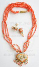 Traditional Indian Lac/Lakh Handcrafted Ethnic Jewelry Pendant Set With Matching Earrings from India : India is famous for traditional handcrafted ethnic jewelry. Lakh Jewelry (wax filled jewelry).