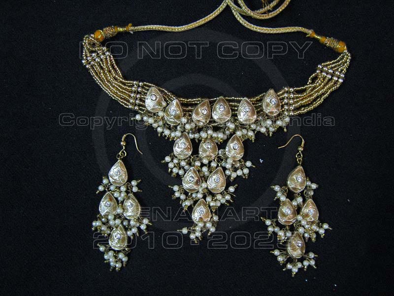 Traditional Indian Lakh Handcrafted Ethnic Jewelry Necklace Set With Matching Earrings from India : India is famous for traditional handcrafted ethnic jewelry.Lakh Jewelry (wax filled jewelry ).