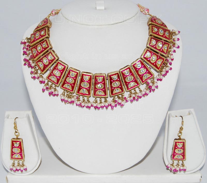 Traditional Indian Lakh Handcrafted Ethnic Jewelry Necklace Set With Matching Earrings from India : India is famous for traditional handcrafted ethnic jewelry.Lakh Jewelry (wax filled jewelry ).