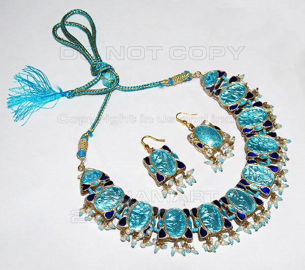 Traditional Indian Lakh Handcrafted Ethnic Jewelry Necklace Set With Matching Earrings from India : India is famous for traditional handcrafted ethnic jewelry.Lakh Jewelry (wax filled jewelry ).