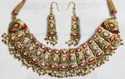 Traditional Indian Lakh Handcrafted Ethnic Jewelry Necklace Set With Matching Earrings from India : India is famous for traditional handcrafted ethnic jewelry.Lakh Jewelry (wax filled jewelry ).