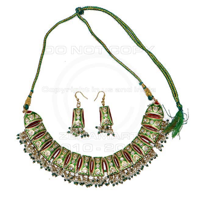 Traditional Indian Lakh Handcrafted Ethnic Jewelry Necklace Set With Matching Earrings from India : India is famous for traditional handcrafted ethnic jewelry.Lakh Jewelry (wax filled jewelry ).