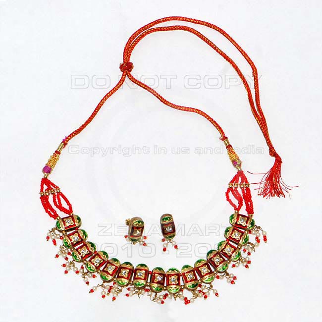 Traditional Indian Lakh Handcrafted Ethnic Jewelry Necklace Set With Matching Earrings from India : India is famous for traditional handcrafted ethnic jewelry.Lakh Jewelry (wax filled jewelry ).