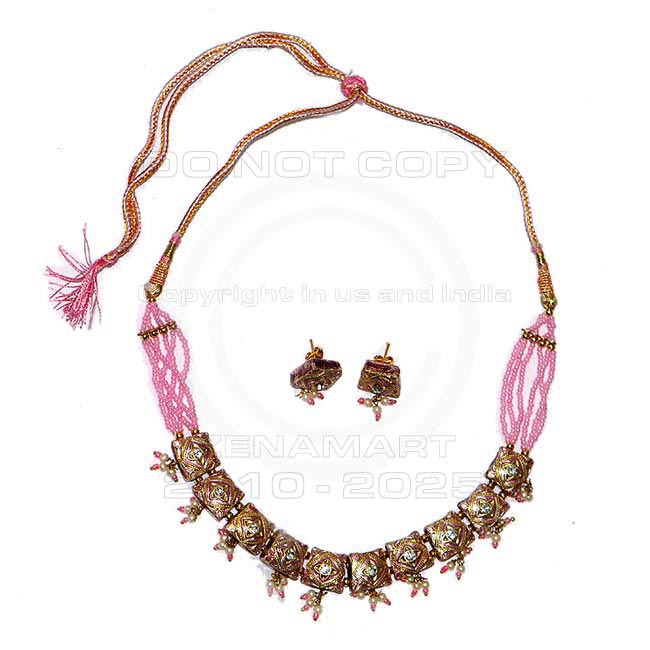 Traditional Indian Lakh Handcrafted Ethnic Jewelry Necklace Set With Matching Earrings from India : India is famous for traditional handcrafted ethnic jewelry.Lakh Jewelry (wax filled jewelry ).
