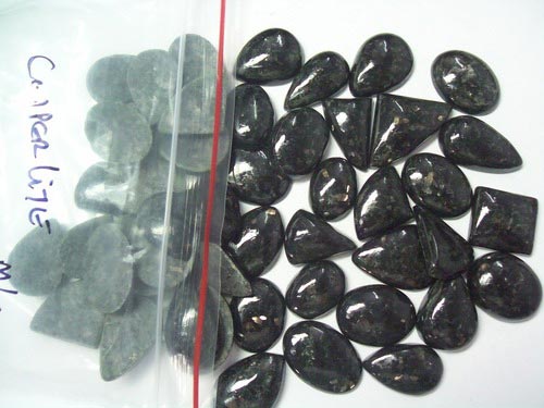 Copperlite Gemstones Cab Wholesale LotCopperlite cabs is available in loose/free shape size in stock. But we can also produce them on order in calibrated shapes & sizes.