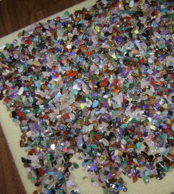 These are polished gemstones 4-7 mm in size. No two bags are exactly alike, this includes variety and count. I measured a 1 oz. cup full of these and poured them into 3 bags. I counted 235, 240 and 242. You may end up with more than 242 or less than 235--this varies on the size of the stones.
