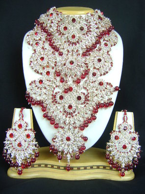 The zirconia stones are studded on the silver metal in an intricate arrangement to produce a wonderful effect. The entire lower margin of the necklace is lined with tufts of small burgundy red dangling beads.