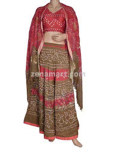 Our Bandhej Lehenga Cholis are available in different styles, colors and designs. Cotton Lehenga Choli is designed beautifully with Bahdhej Bandhini work. This Choli will surely enhance the beauty of your persona when teamed with matching Lehenga and double shaded cotton dupatta With a Marvelous Bandhej Bandhini, Sequins, Beads, Shell & Mirror Work.