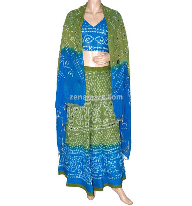 Our Bandhej Lehenga Cholis are available in different styles, colors and designs. Cotton Lehenga Choli is designed beautifully with Bahdhej Bandhini work. This Choli will surely enhance the beauty of your persona when teamed with matching Lehenga and double shaded cotton dupatta With a Marvelous Bandhej Bandhini, Sequins, Beads, Shell & Mirror Work.