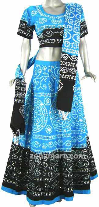 Our Bandhej Lehenga Cholis are available in different styles, colors and designs. Cotton Lehenga Choli is designed beautifully with Bahdhej Bandhini work. This Choli will surely enhance the beauty of your persona when teamed with matching Lehenga and double shaded cotton dupatta With a Marvelous Bandhej Bandhini, Sequins, Beads, Shell & Mirror Work.