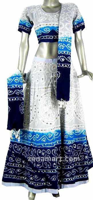Women Dress Cotton Sequins Mirror Lehenga Bandhej Chaniya Choli Lenga