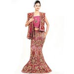 Its a Master Piece In Its Class Glorifying Your Timeless Beauty. Be The Sunshine Of EveryoneS Eyes Dressed In This Beautiful dress. This Attire Is Beautifully Adorned With Bead, Bugle Beads/ Cutdana, Embroidery With Stones/Crystals, Stones & Velvet Patch Work.