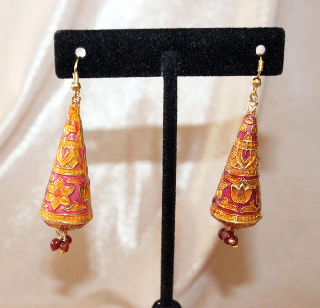 These are a beautiful pair of Lac Earrings. These are very light weight Handcrafted Jewelry. These are handmade earrings made completely by hand with almost all organic ingredients called Lac or Lakh. Lakh Jewelry or Lac jewelry is handcrafted in small villages of Rajasthan in India. Lac Jewelry has a touch of ethnic and classy look. This set involves very intricate and detailed craftmenship Lakh jewelry, lac jewellery.