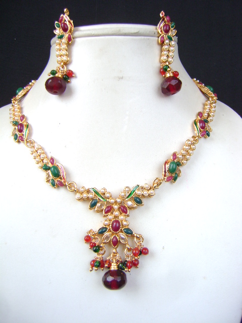 Lovely Polki Link Set in attractive designs, and Light, casual and affordable, necklace sets that can be matched each to an outfit.