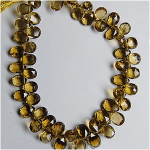 Natural Beer Quartz Side Drill Pears Briolette Approx Weight 30 ct. And Color : Beer Length : 8 inch.