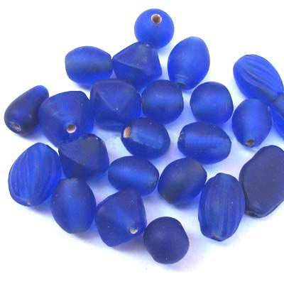 Plain Blue Frosted Mix Shape Glass Beads Colour: Blue mid trans frosted Lots of : 1kg