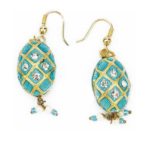 A traditional handcrafted Earring set originating from India.The color of the set is made of enamels, also known as meenakari, and it is intricately hand made with beads,imitation pearls, and cz stones.