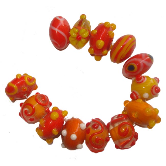 Lampwork fancy glass beads 13 pieces strung in a thread,
