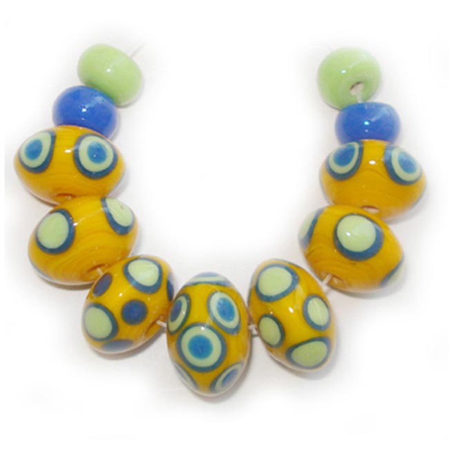 Lampwork fancy glass beads 11 pieces strung in a thread, Please Note : This price is for 1 set price and minimum order quantity is 25 set.
