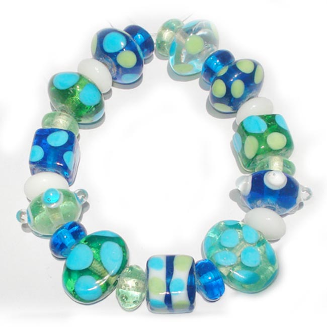 Google+ Lampwork fancy glass beads 23 pieces strung in a thread,