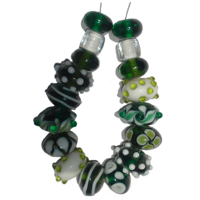 Google+ Lampwork fancy glass beads 17 pieces strung in a thread,